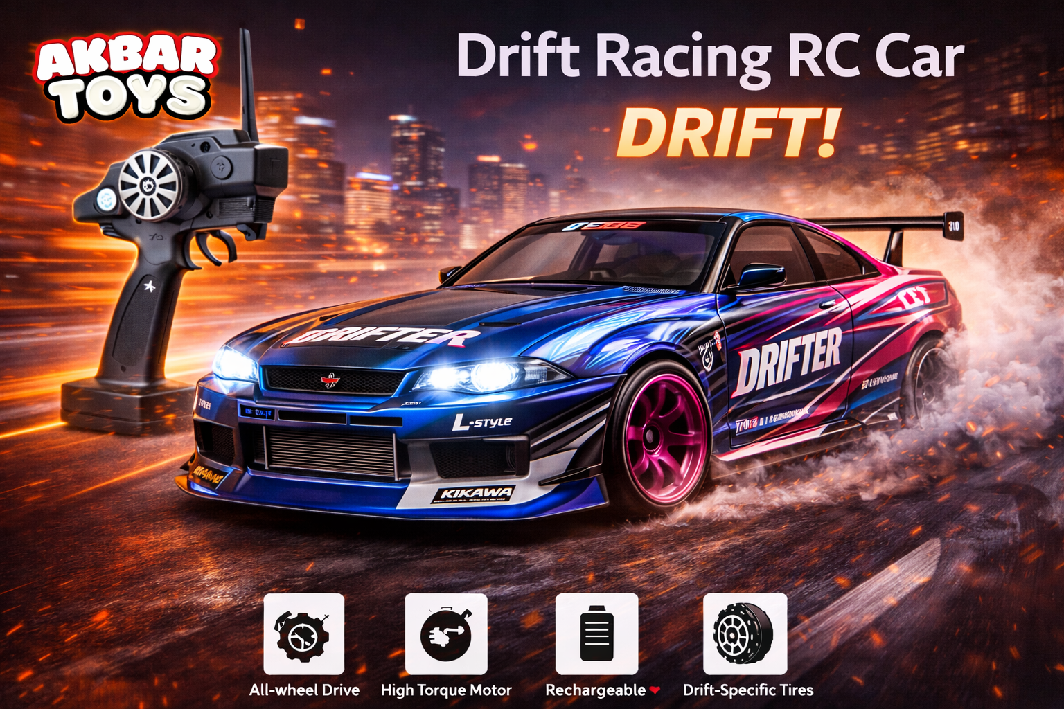 Desain sport untuk drift dan balapan sebagai alternatif dalam bermain Remote control.